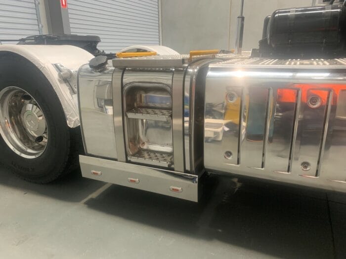 Stainless Steel End Cap Tank Skirt Square 875MM 3 LED’s Amber Single To Suit Kenworth/Freightliner/Iveco/Mercedes